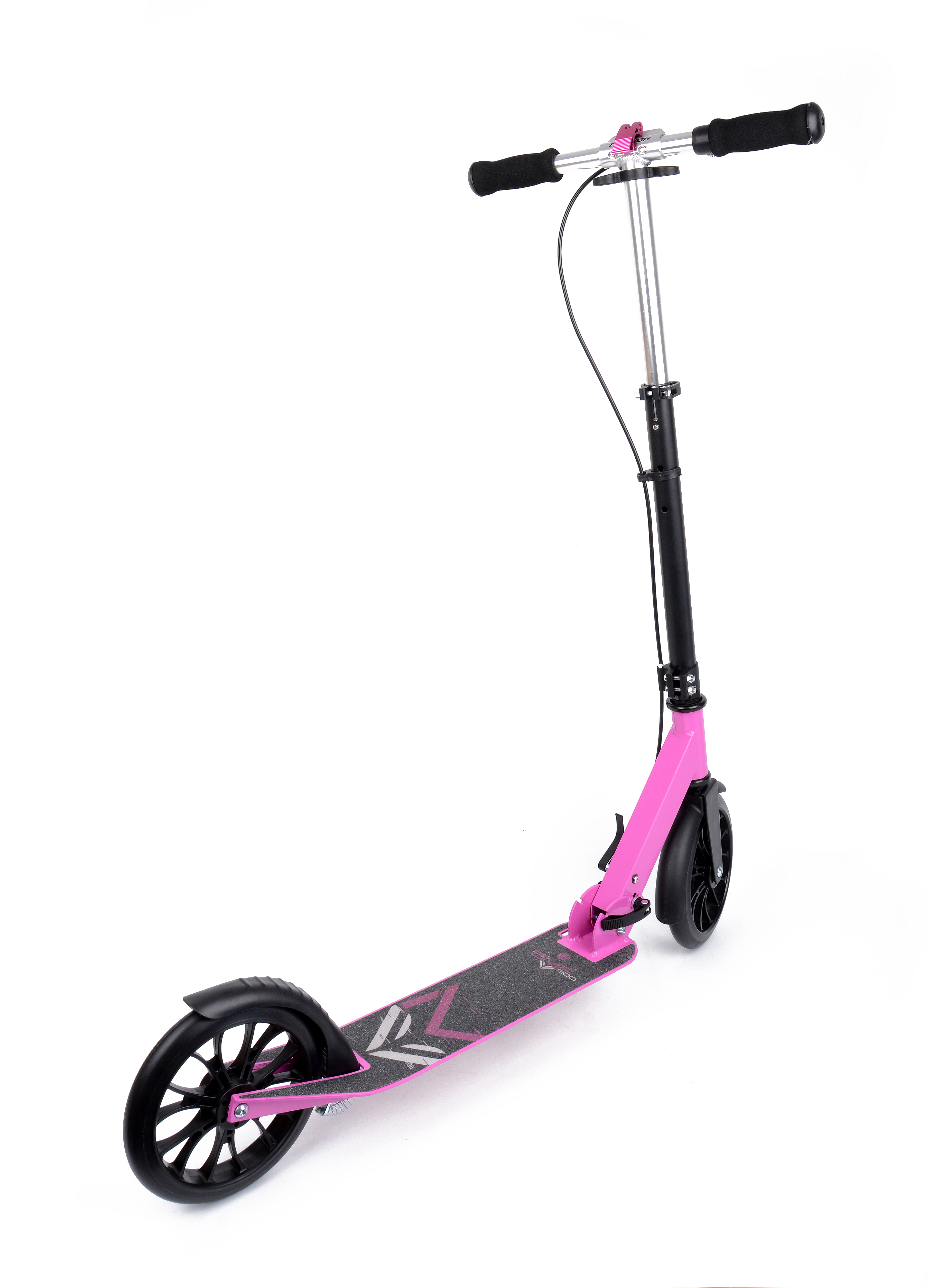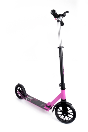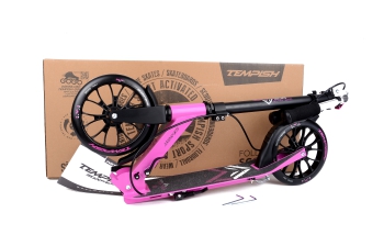 это складной самокат в ярком тоне, который подходит не только детям и подросткам, но и взрослым. Модель идеально подойдет для использования в городских условиях. Самокат максимально экономит место и легко складывается всего несколькими движениями. Вся конструкция складывается пополам по длине, а руль - по ширине. Руль регулируется по высоте и фиксируется быстроразъемным соединением. Материалом для самоката послужил легкий и прочный алюминий, благодаря чему он может выдерживать вес взрослого человека и при этом легок в транспортировке.