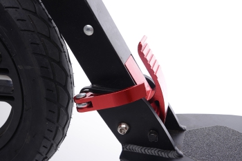 Складывается самокат одним движением, за счет специального рычага с предохранителем. Предохранитель убережет конструкцию от произвольного складывания при случайном контакте с рычагом. Для парковки, внизу предусмотрена подножка для кратковременных остановок, когда сворачивать всю конструкцию нет смысла.