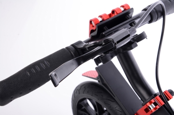 Для подгонки самоката как под взрослого, так и под ребенка, в нем предусмотрен ряд регулировок. Расстояние между рулем и тормозной ручкой настраивается под индивидуальный размер ладони, для обеспечения комфортного хвата, а анатомические грипсы улучшают удержание руля во время длительных поездок. Высота руля регулируется по трем уровням, в диапазоне начиная от 84 см и заканчивая 98 см. Фиксация руля после регулировки осуществляется быстросъемным зажимом. Положение самого руля также можно отрегулировать, а фиксируется он с помощью специального большого зажима.