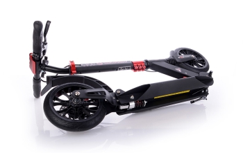 На самокат установлены износостойкие колеса диаметром 200 мм и шириной 35 мм, чего достаточно, чтобы обеспечить хороший накат и сцепление. Чтобы остановить транспортное средство, в нем используется механический дисковый тормоз, и дополнительный тормоз-брызговик. Механический тормоз ремонтопригоден и его легко отремонтировать во время повреждений в полевых условиях, имея минимальный портативный набор инструментов. Также в передней части тормозной трос защищен, так как проведет внутри рулевой конструкции. Для устойчивости и хорошего контакта подошвы с декой, на ней имеется зернистое, противоскользящее покрытие.