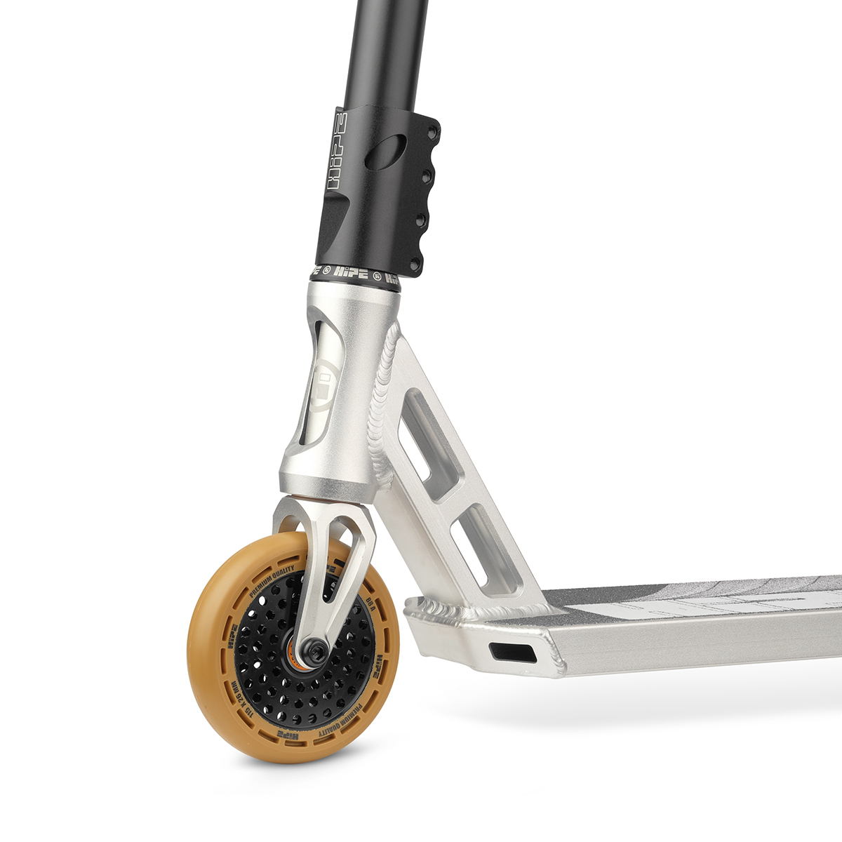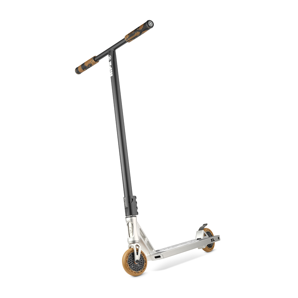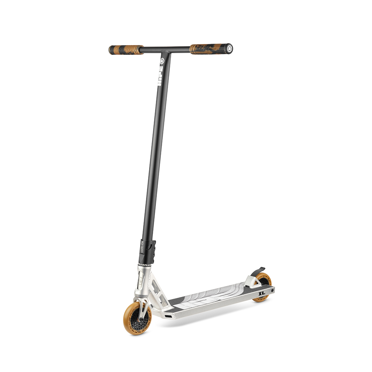 Hipe XL - профессиональный стритовый самокат, рассчитан для райдеров ростом от 160 до 190 см. Особенностью модели являются усиленные компоненты, а именно: дека с квадратными дропаутами, и съемный тормоз с футфендером. Обновленные колеса имеют более широкое PU покрытие для лучшей амортизации, а новый Т-образный руль из хромомолибденовой стали гарантирует повышенную прочность.