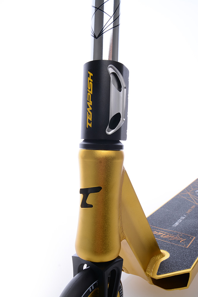 Модель оснащена системой компрессии SCS, которая распространена в профессиональных трюковых моделях, так как она максимально устойчива к прыжкам и тяжелым приземлениям. Хоть она и имеет большой вес, она безотказна при постоянном выполнении drop-in, backflip, и бар спинов. Компрессия в связке с высокопрочным Y-образным рулем из CrMo стали без пропила дает максимально возможное сжатие из всех.