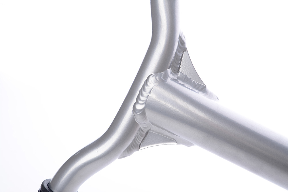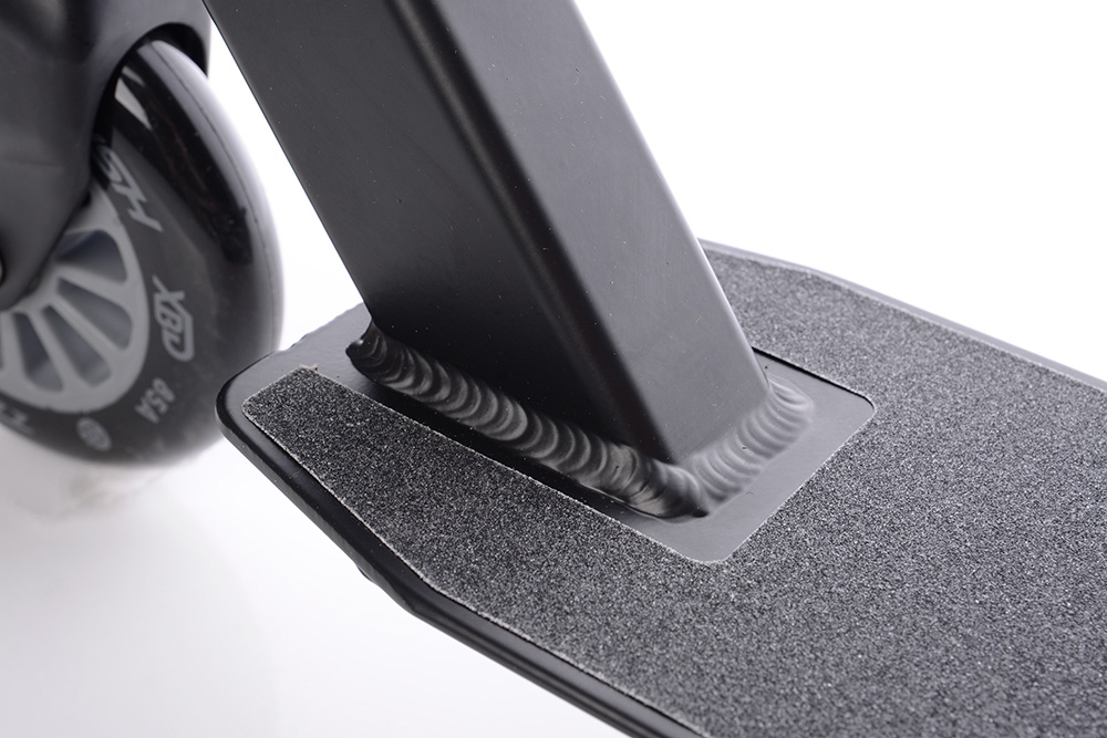 Дека, рулевая колонка и руль выполнены из кованого алюминиевого сплава и готовы выдерживать высокие нагрузки и удары при катании в рампе или скейт парке. Компрессионная система SCS (Standart Compression System) – отличный вариант для трюковых самокатов высокого уровня, она рассчитана выдерживать сильные удары и перегрузки.