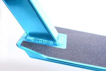Отличительной чертой самоката является элоксация - это вид химико-термической обработки алюминия, заключающейся в создании защитного слоя оксида алюминия на поверхности металла, что не позволяет ему дальше окисляться, тем самым защищая от коррозии.